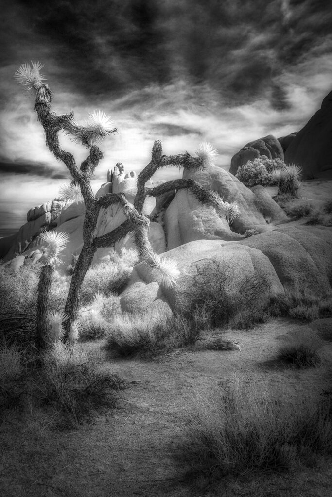 Because it was early March, the park was refreshingly quiet—few crowds, soft light, and space to breathe. Each day, I entered the park before dawn to capture the blue and golden hours, took a break during the midday harsh light, and returned again around 3 p.m. to photograph until sunset. The light during those few days was simply extraordinary—ideal for infrared photography. The textures, the contrast, the quiet—everything came together in a way that made the landscape feel timeless.